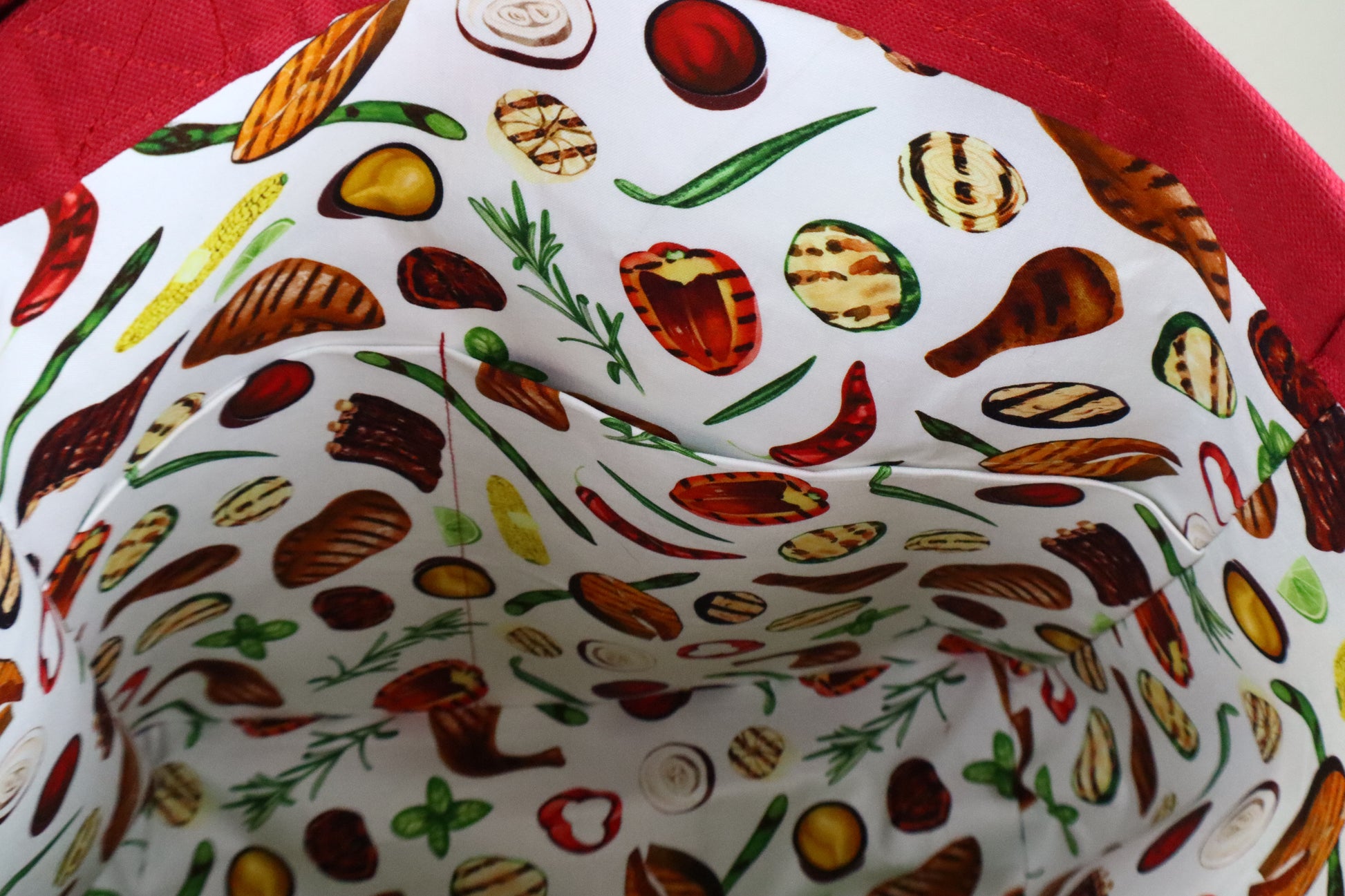Contrasting matching fabric on the inside. We use lighter colors to make it easier to see what is in your bag! Made in the USA