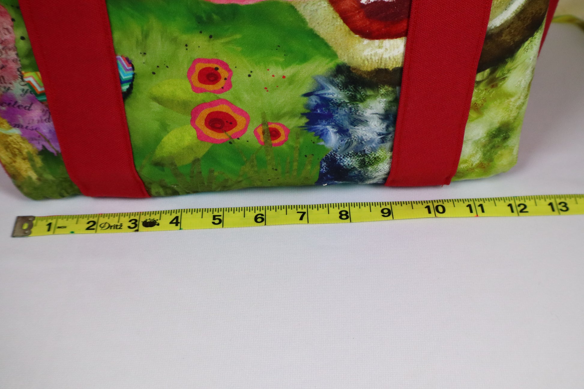Colorful and slouchy while being stiff and molded, this cotton canvas bag is a go-to bag for the person on the move. Strong and sturdy with lots of room inside.