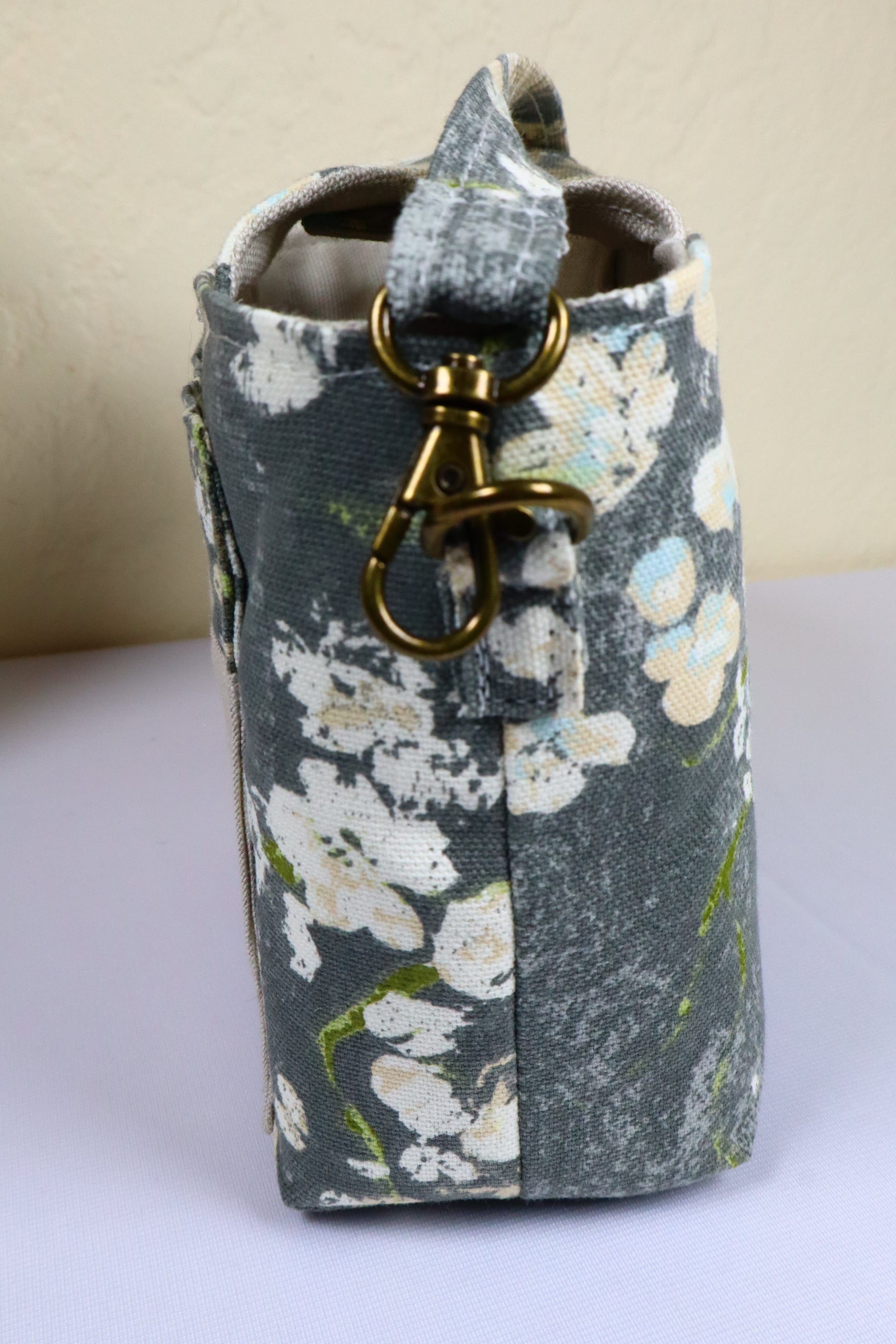 Two outside pockets - one plain and the other with an antique brass zipper. The matching strap measures 27" when removed from the bag by antique brass clips - also gives you the option of changing the strap. A strong magnet closes your bag easily with a stone-like embellishment. (The embellishment may differ per bag.)
